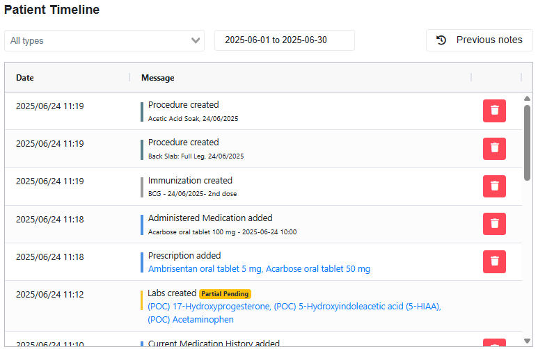 Previous Notes (Within the Patient Timeline section and below Post Visit Instructions)