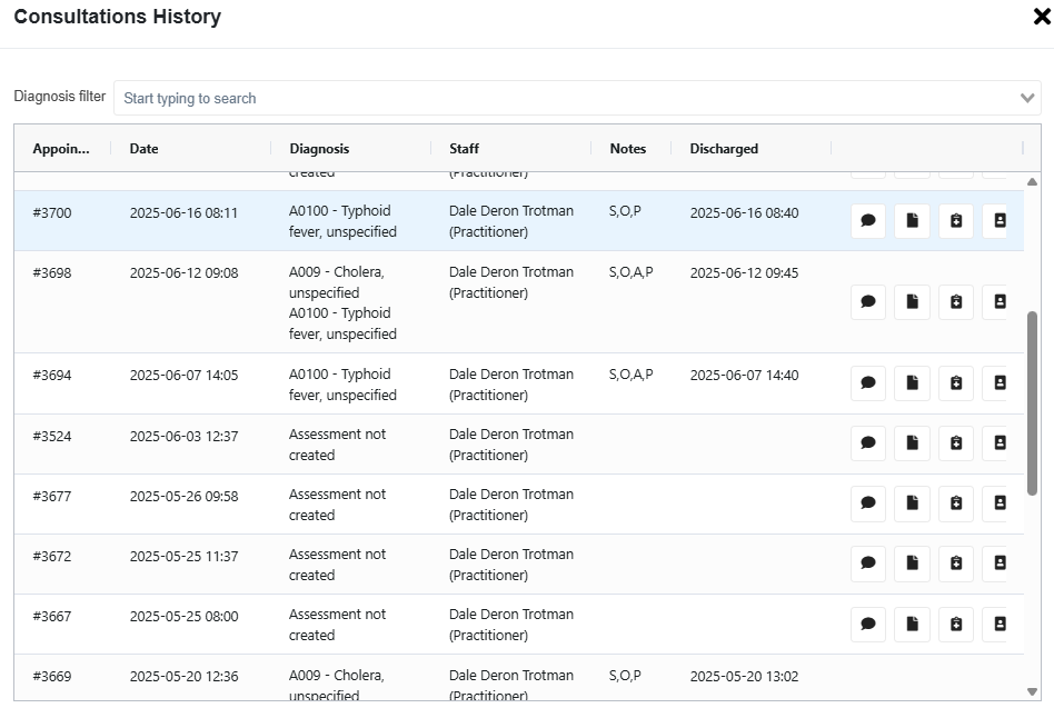 2. The Diagnosis Filter allows users to search for Consultation Notes by Diagnosis.