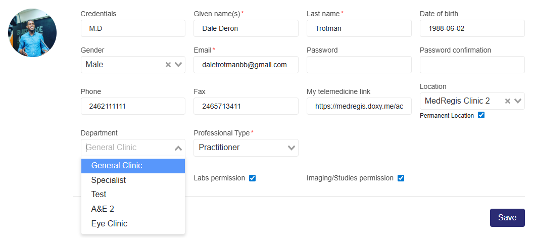 Assign a Department to Professionals (Clinic Admin Plus)